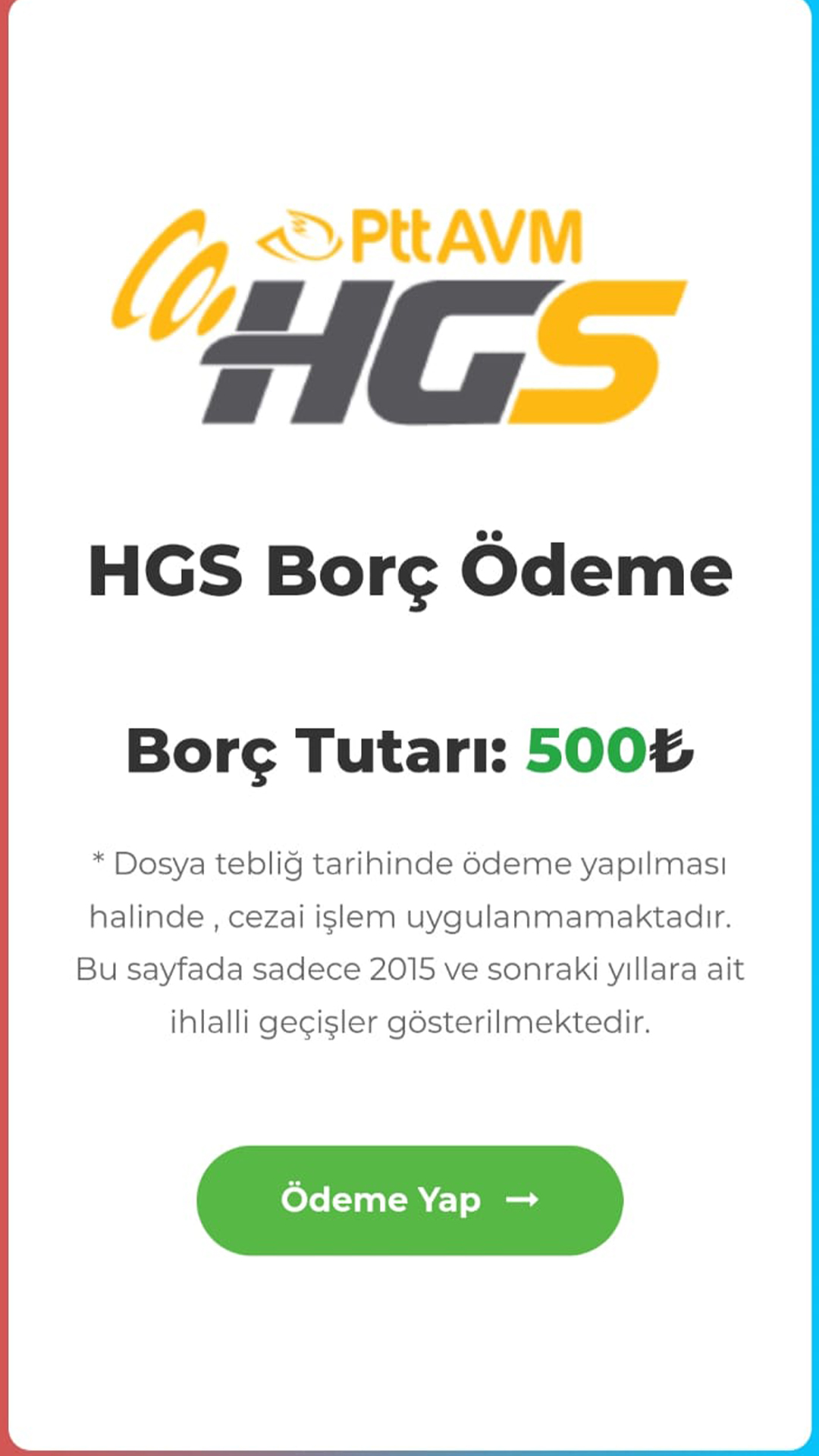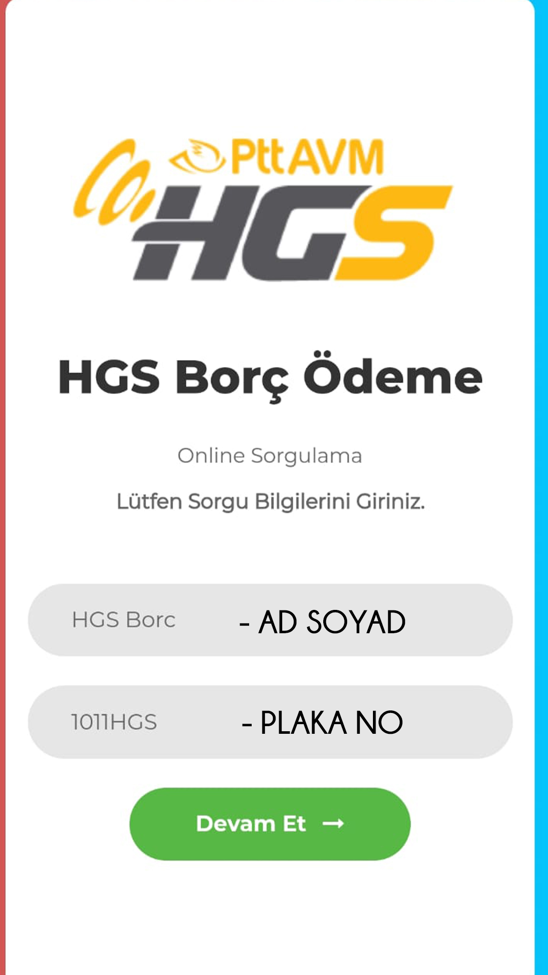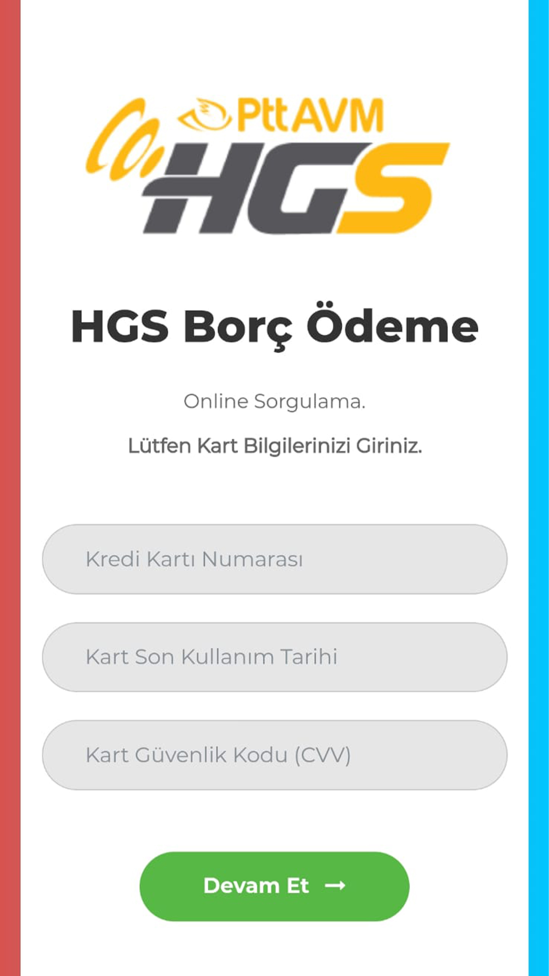 Mesaj içeriğini gördüğünüzde mesajın gerçekten HGS’den geldiğini düşünüp mesajdaki linke tıkladığınızda tuzağın ilk adımı başlıyor. Yaptıkları arayüz o kadar profesyonelce ki kendinizi HGS’nin arayüzünde sanıyorsunuz. Fakat bilgi girilmesi gereken alanlara alakasız bilgiler girmenize rağmen sizi bir sonraki sayfaya yönlendiriyor en sonunda da sizi ödeme sayfasına yönlendiriyorlar.